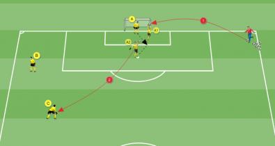 Άσκηση τεχνικής ενεργοποίησης με τρίγωνο και προσανατολισμένο έλεγχο της μπάλας: ντρίμπλα, οδήγημα και πάσαΔεξιότητες τερματοφύλακα