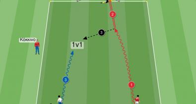 Άσκηση γρήγορης μεταφοράς της μπάλας και σουτ στο τέρμα με κατάσταση 1 εναντίον 1 (επίθεση και άμυνα)Τακτική