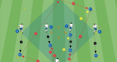 Άσκηση με αλληλουχία πασών παίζοντας με βάση το ποιον βλέπω και με ανταλλαγές θέσεων με το σωστό συγχρονισμόΤεχνική