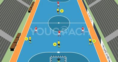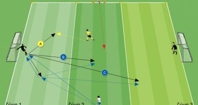 Απλοποιημένη κατάσταση 2 εναντίον 1 με απώλεια του μαρκαδόρου για υποδοχή, ατομική μονομαχία 1 εναντίον 1, ντρίμπλα και τελείωμα σε δύο γκολΤακτική