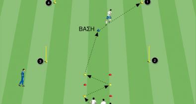 Rondo 2 εναντίον 2 με 2 μπαλαντέρ για ευρεία κατοχή μπάλας και τελική κατάσταση 1 εναντίον 1 με ολοκλήρωση.Φυσική κατάσταση