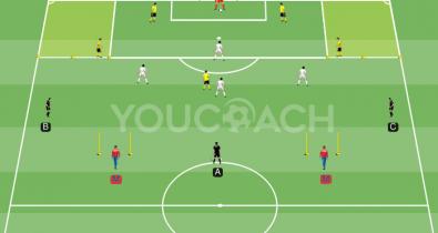 Εξασκήσου στην ανάπτυξη από το αμυντικό τρίτο με διαδοχικές μεταβάσεις.Τεχνική