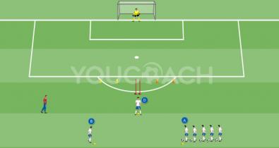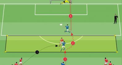 Άσκηση για την εξάσκηση της πάσας, της ντρίμπλας και του σουτ στο τέρμαΣελίδες