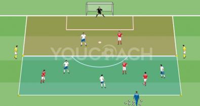 Μικρό παιχνίδι 4 εναντίον 4 με 2 παίκτες στα πλάγια, με έμφαση στην κατοχή μπάλας σε πλάτος και τελείωμα φάσης στο τέρμα.Τακτική