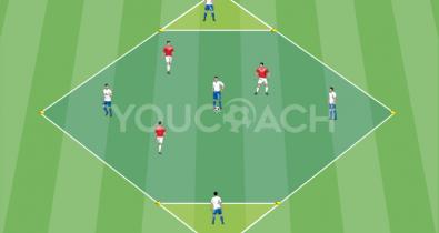Χώρος παιχνιδιού σε σχήμα διαμαντιού για κατοχή μπάλας 5 εναντίον 3 με αναζήτηση πλάτους και βάθουςΤεχνική