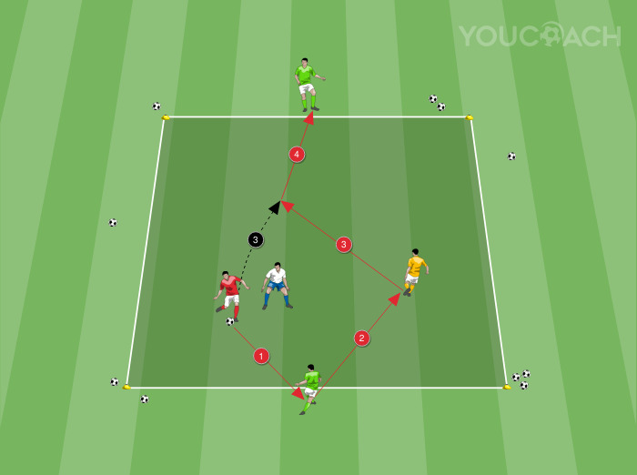 - Κατά την εναλλαγή των παικτών, αποφύγετε οι παίκτες εντός του τετραγώνου να παίζουν περισσότερες από δύο διαδοχικές φάσεις (εναλλάσσοντάς τους με τους ρόλους των μπακ)
