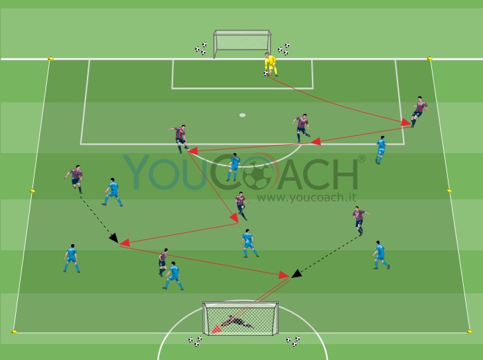 - Ενθάρρυνση των δύο ομάδων να δημιουργήσουν παιχνίδια με γρήγορο ρυθμό για να φτάσουν στο γκολ όσο το δυνατόν γρηγορότερα
