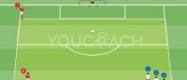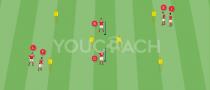 - Χρησιμοποιήστε τους κώνους για να δημιουργήσετε διαδρόμους και να περιορίσετε τη ντρίμπλα μόνο στις πλάγιες ζώνες, ενθαρρύνοντας τον επιτιθέμενο να δεχτεί την μπάλα στο πλάτος.
