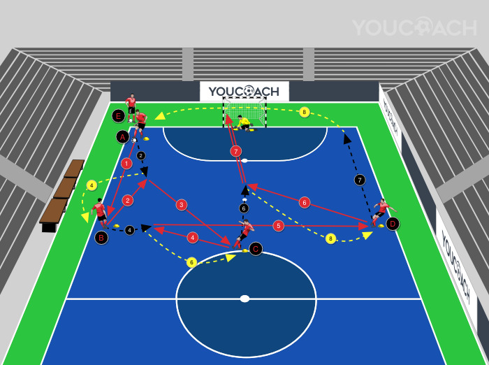 - Ο C εκτελεί σουτ στην εστία, ενώ ο D προωθείται από τα πλάγια για να προσφέρει πλάτος στο παιχνίδι.
