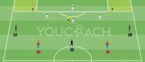 - Εάν, μετά τη μετάδοση της μπάλας, ο κεντρικός αμυντικός και ο εξωτερικός αμυντικός δεν έχουν καταφέρει να εκμεταλλευτούν την αριθμητική υπεροχή, θα ξεμαρκαριστούν και πάλι προκειμένου να δημιουργήσουν μια άλλη κατάσταση 2 εναντίον 1 που τους οδηγεί σε επίθεση σε διαφορετικό τερματοφύλακα