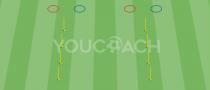 Στο ένα μισό του γηπέδου τοποθετήστε δύο επιθετικούς στην άκρη του γηπέδου και τέσσερις παίκτες στη μεσαία γραμμή, ως μέσοι και επιθετικοί ενός συστήματος 4-4-2. Τοποθετήστε τους υπόλοιπους παίκτες πίσω από τους μεσοεπιθετικούς περιμένοντας τη σειρά τους. Δώστε μια μπάλα στους εξωτερικούς παίκτες.