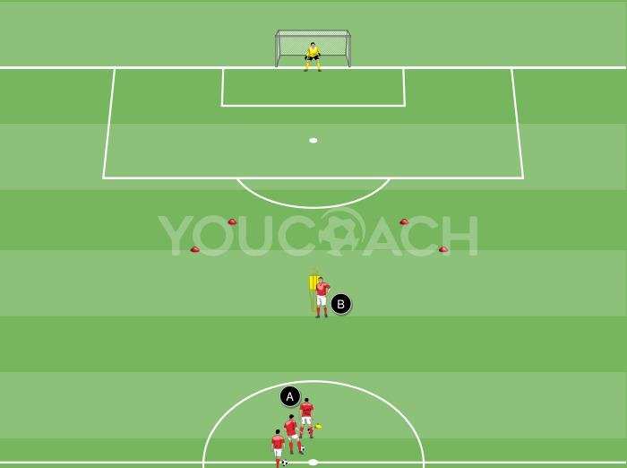 Possession - Μικρό παιχνίδι 4 εναντίον 4 + 4 με στόχο τη διατήρηση της κατοχής της μπάλας και το σουτ σε 4 μικρά τέρματα. -