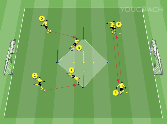 Πάσα - Άσκηση με αλληλουχία πασών παίζοντας με βάση το ποιον βλέπω και με ανταλλαγές θέσεων με το σωστό συγχρονισμό -