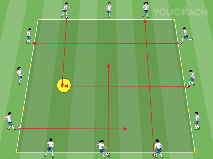 Άσκηση για το σχολικό ποδόσφαιρο: χειρισμός της μπάλας και 1-on-1