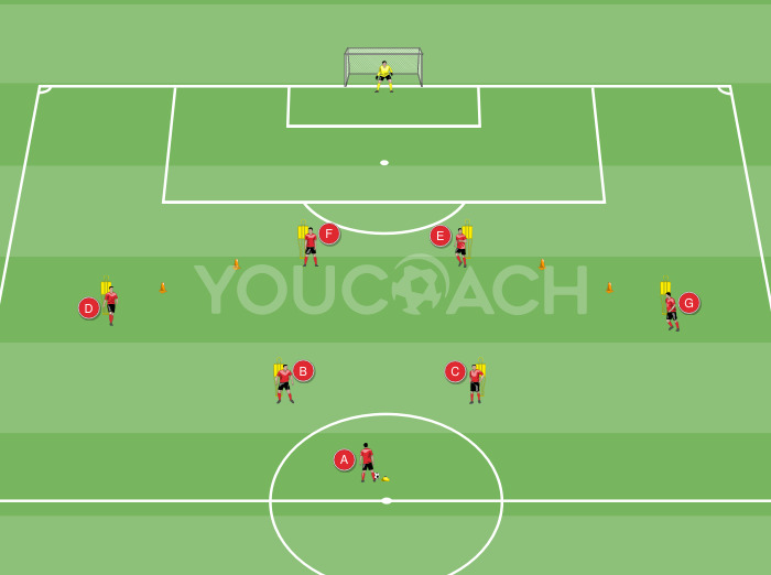 Finishing in the final third - Αυτή η άσκηση εκπαιδεύει την ικανότητα των παικτών να δημιουργούν μια χρήσιμη κατοχή μπάλας που καταλήγει σε σουτ στο τέρμα. -