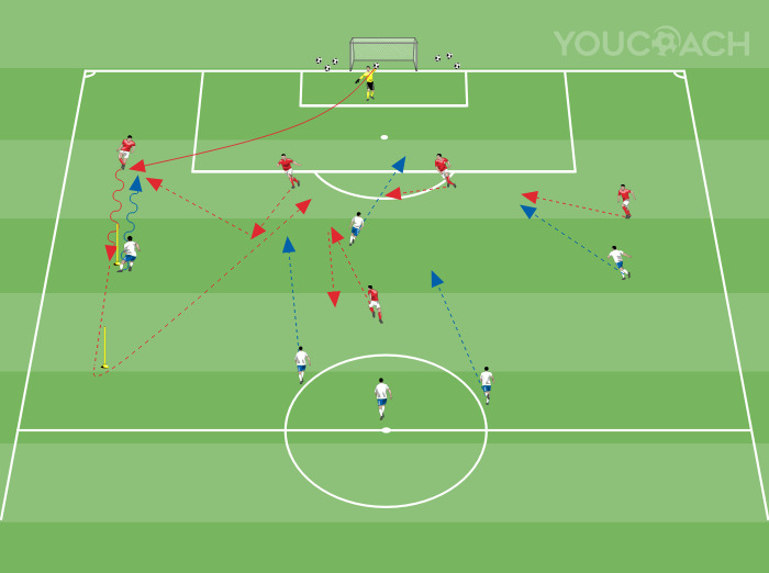 Attacking Principles - Με αυτή την άσκηση εξασκούμε τις κινήσεις στο σύστημα 4-3-3, το πλάγιο άουτ και το σουτ. -
