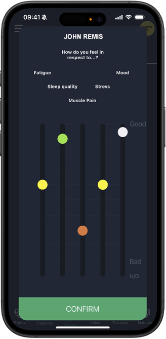 Με τη χρήση της κινητής εφαρμογής, οι παίκτες μπορούν να καταχωρούν εύκολα τις τιμές RPE και Hooper, οποιαδήποτε στιγμή και από οπουδήποτε.